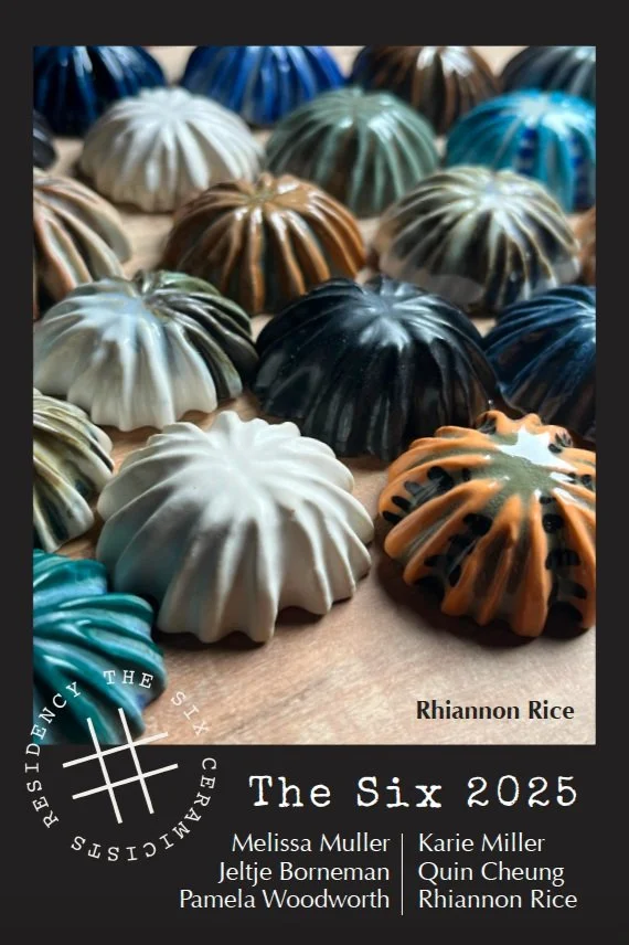 Wow, what a sisterhood! Quin, Pamela, Karie, Rhiannon, Melissa, and Jeltje (who was also a mentor) came together from January 16 to February 27, 2025 to work independently in a collaborative setting on their ceramic practice in this intensive residency.